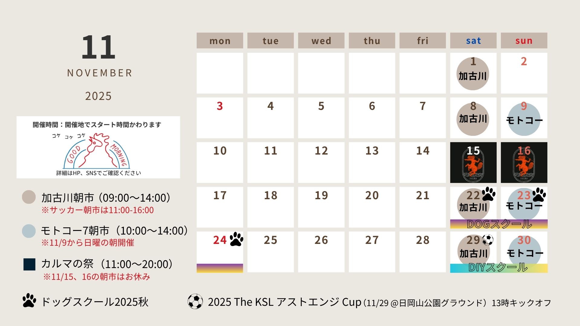 (注)11月9日より日曜開催です(11/2休み)
