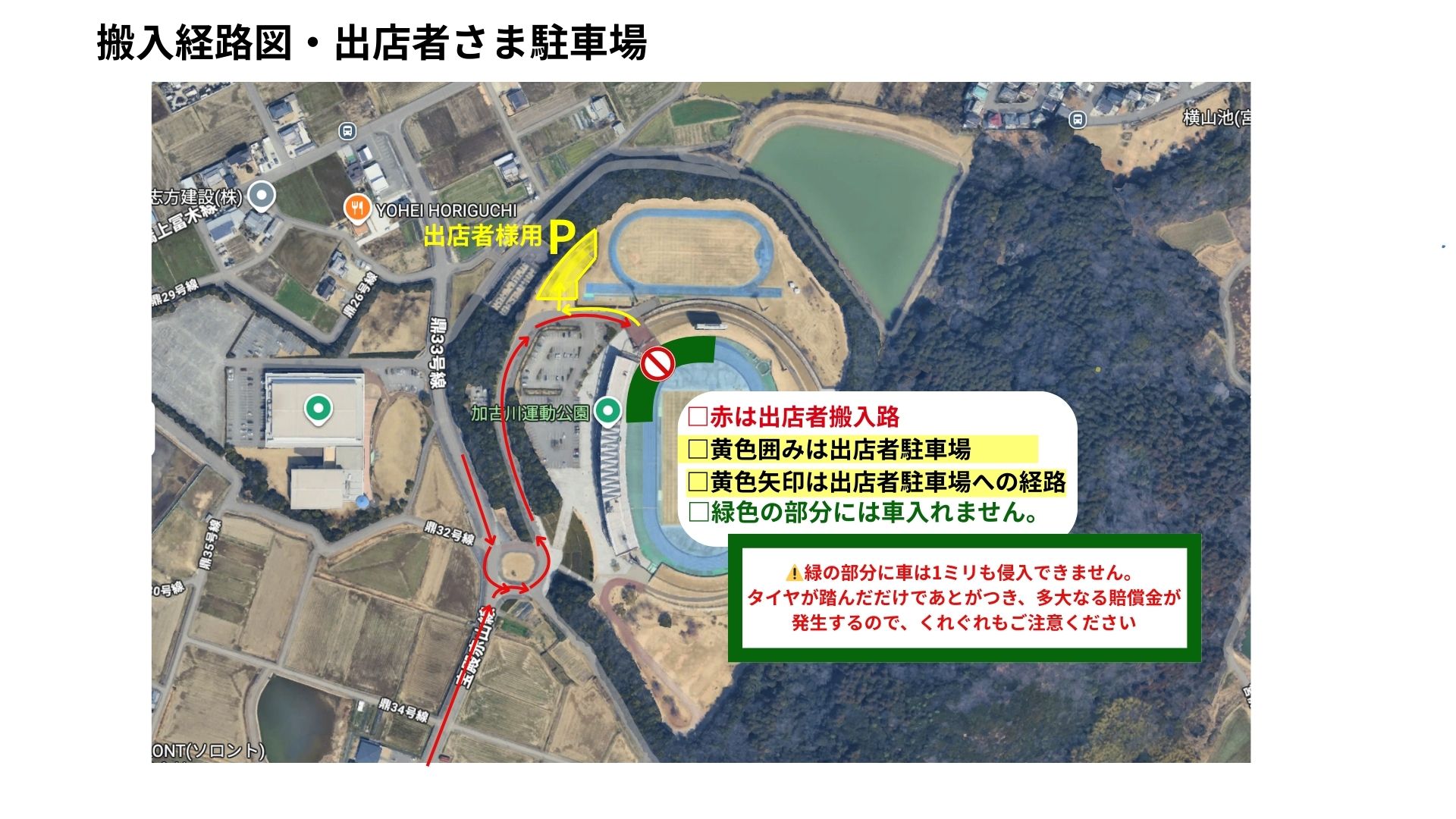 <搬入経路・出店者用駐車場>
