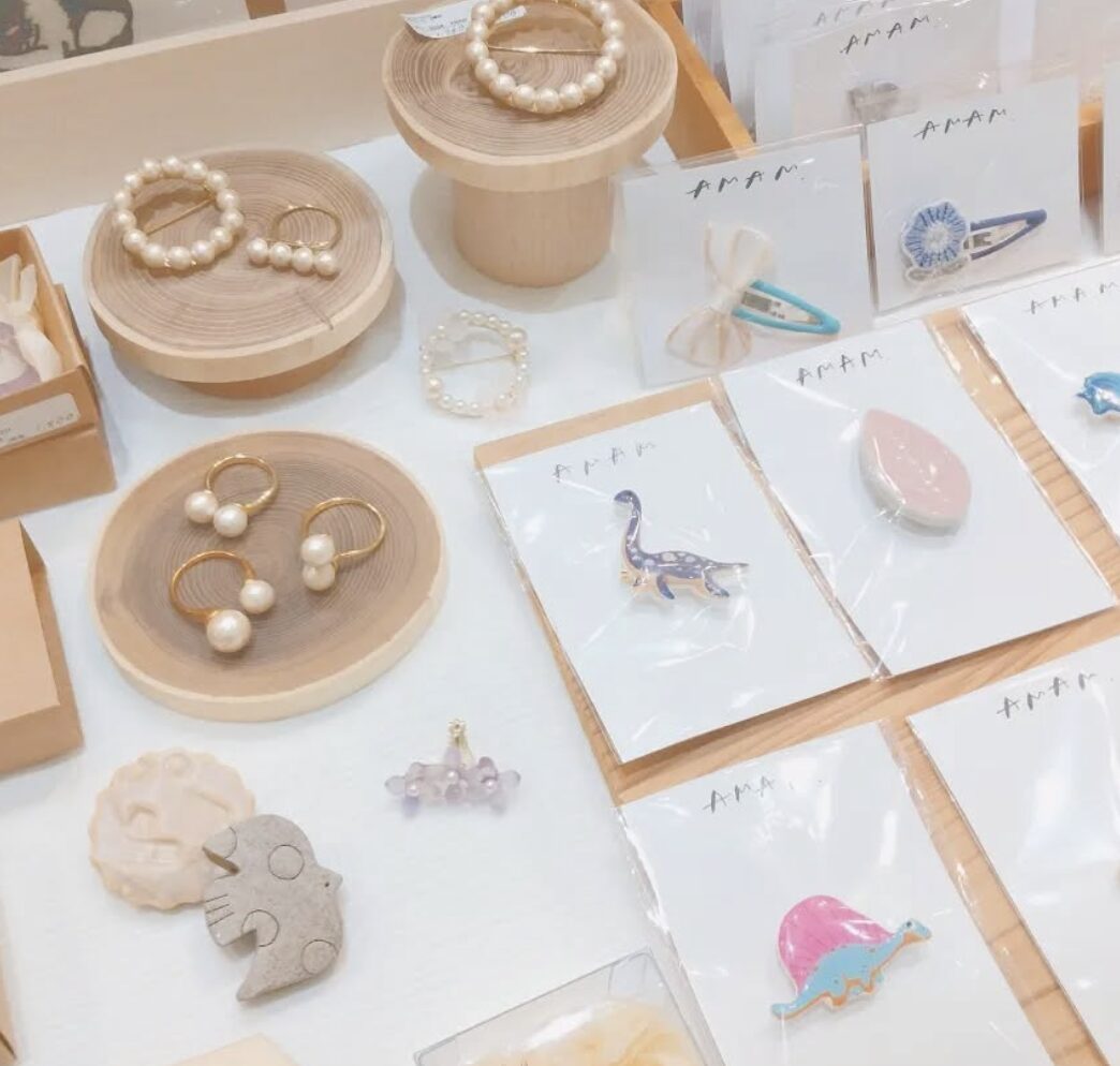 AMAM 出店者, 物販 AMAM 陶土を使ったブローチやアクセサリーや様々な生地を使ったヘアゴムなど日々の生活に気軽にplusして貰えるような商品ご用意していますので是非お手にとって見ていただけると嬉しいです♪ Post Share Pin it 出店者, 物販アクセサリー, ブローチ, ヘアゴム